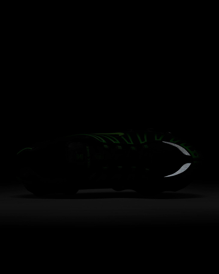 • TPU-пластина в пятке между промежуточной подошвой и системой Nike Shox улучшает боковую устойчивость и поддержку.