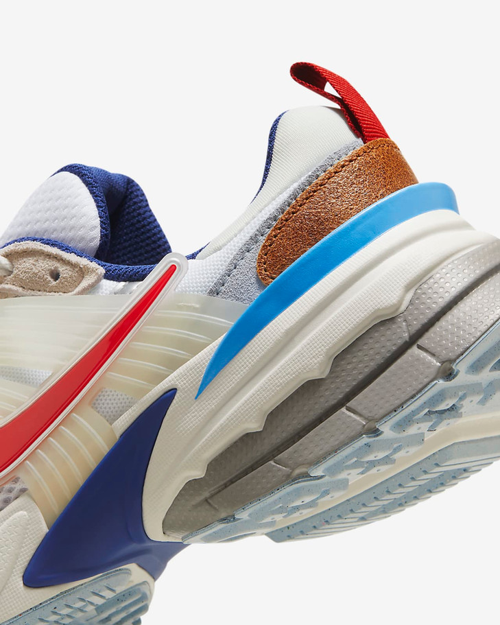 - Прозрачные пластиковые акценты отсылают к классическим Nike Vomero 5.